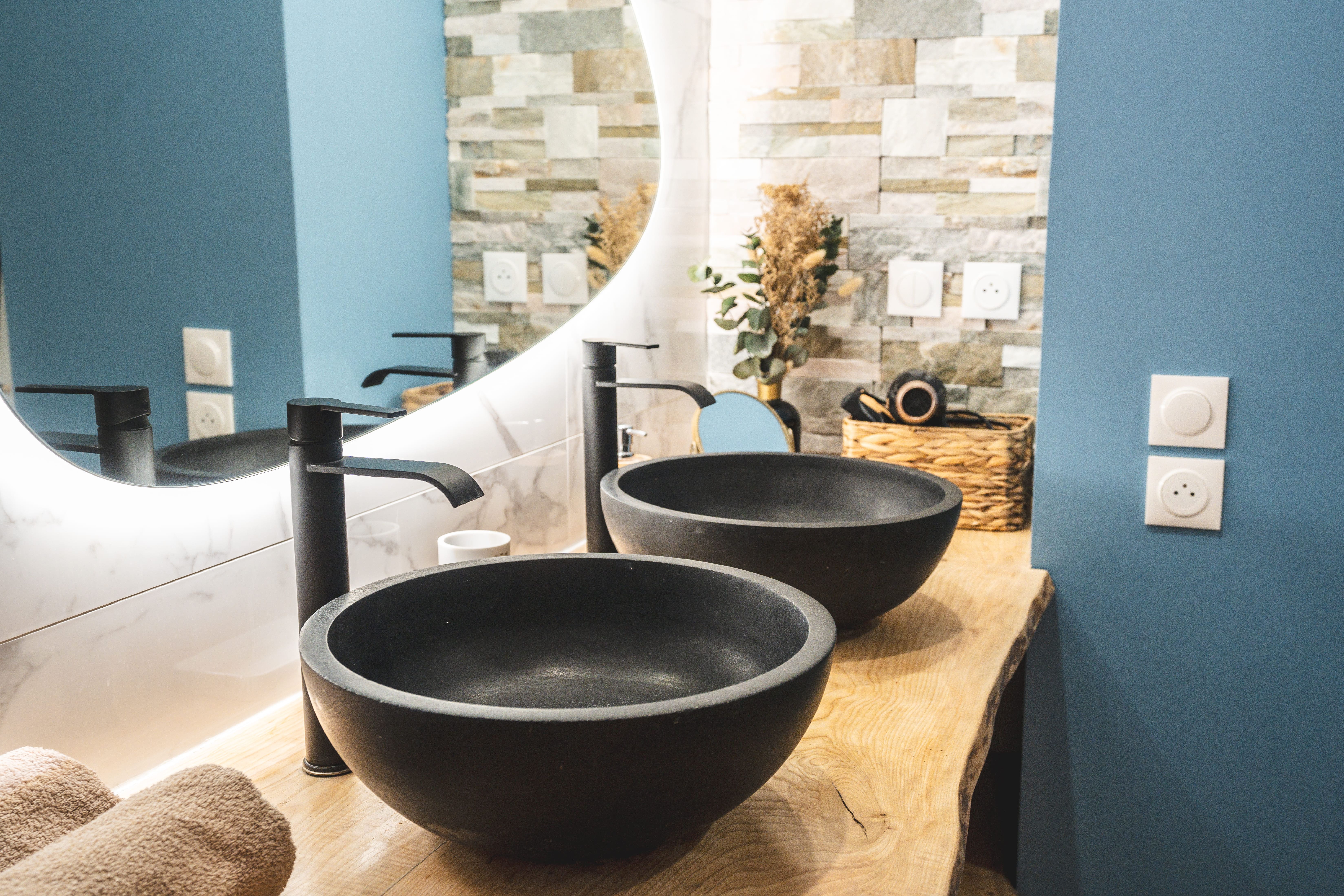 Agencement complet de cuisines, façades bois, plans de travail et rangements intégrés adaptés à votre quotidien.